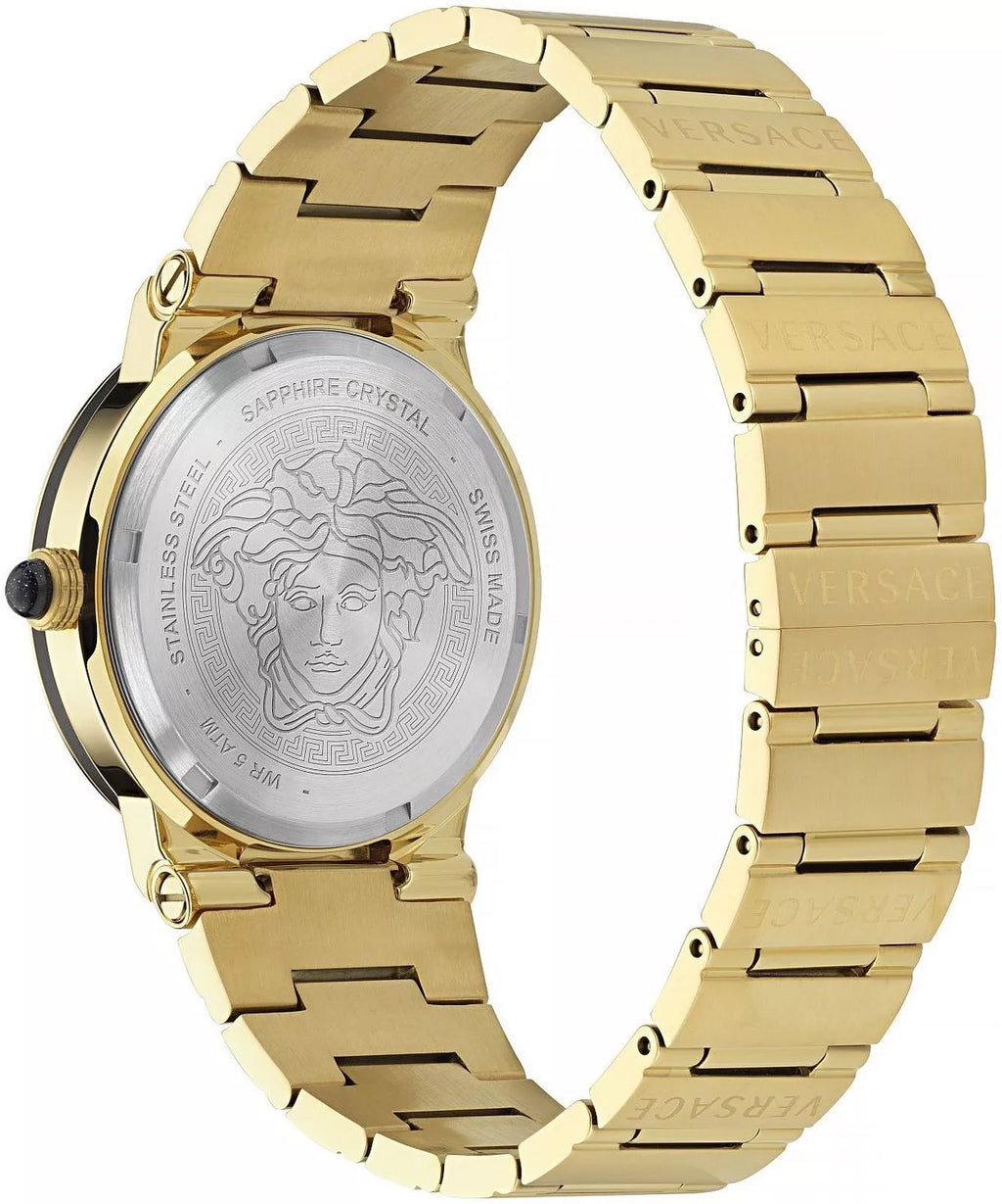 ساعة فيرساتشي غريكا بشعار القمر، مينا أسود، ذهب بالكامل، حركة سويسرية - ve7g00323