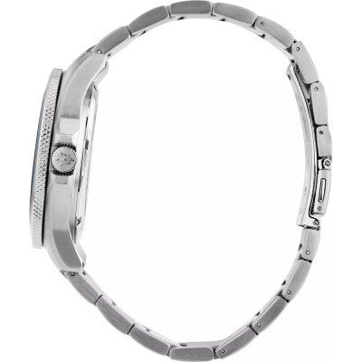 تتميز ساعة مازيراتي كومبيتزيوني الرجالية R8853100036، وهي ساعة غوص، بعلبة دائرية من الفولاذ المقاوم للصدأ الفضي بقطر 43 مم. يعمل ميناؤها الأزرق بحركة كوارتز، ويكتمل مظهرها بسوار فضي اللون مزود بدبابيس تثبيت.