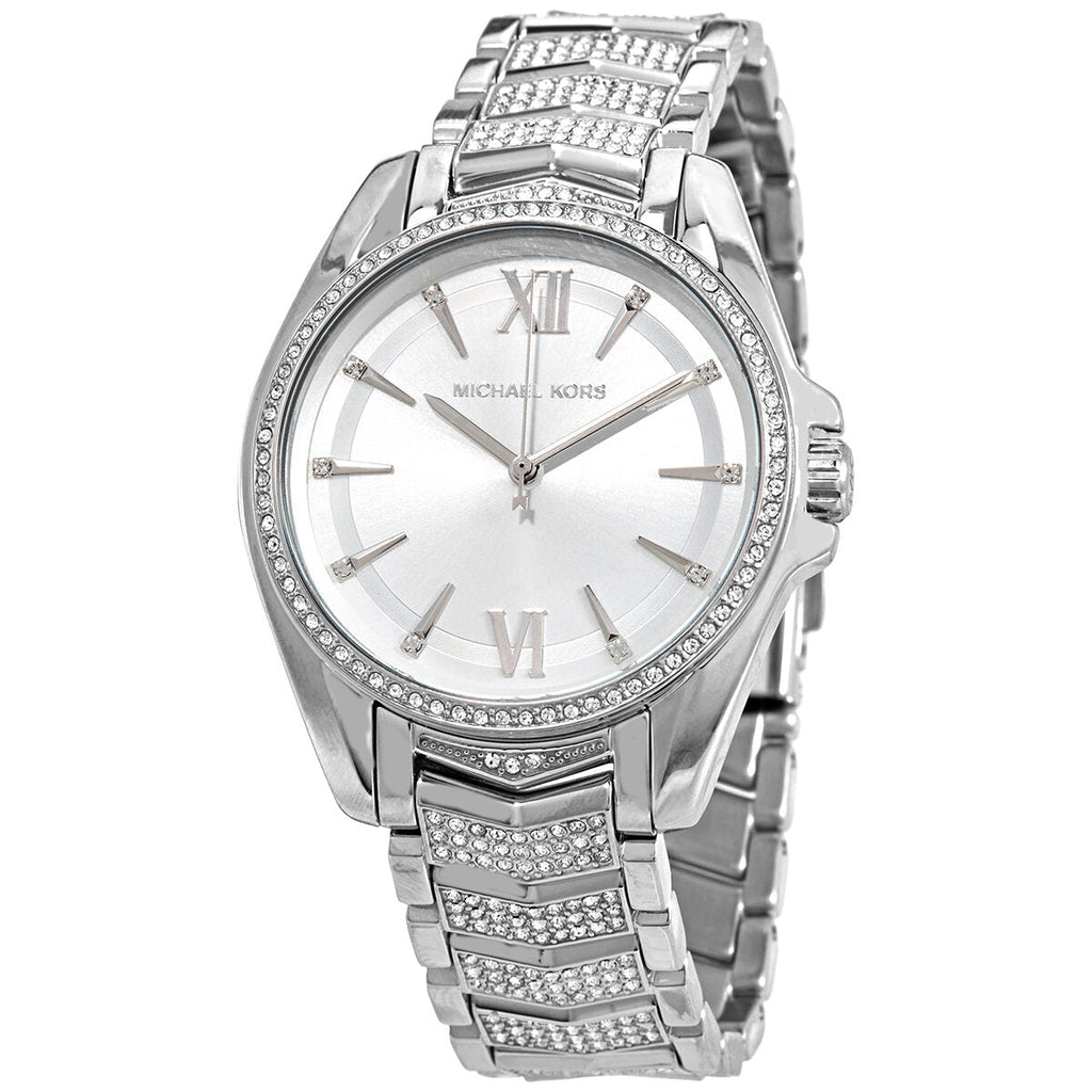 علبة وسوار من الفولاذ المقاوم للصدأ، مرصعان بوصلات براقة. إطار ثابت من الفولاذ المقاوم للصدأ مرصع بالكريستال. مينا أبيض مع عقارب فضية اللون ومؤشرات ساعات كريستالية. أرقام رومانية عند موضع الساعة 6 و12. نوع المينا: تناظري. حركة كوارتز. زجاج معدني مقاوم للخدش. تاج سحب/دفع. غطاء خلفي صلب. شكل العلبة: دائري. قطر العلبة: 38 مم. سمك العلبة: 7 مم. عرض السوار: 18 مم. مشبك قابل للطي مع قفل أمان. مقاومة للماء حتى عمق 50 مترًا/165 قدمًا. الوظائف: الساعات، الدقائق، الثواني. سلسلة ويتني. ساعة أنيقة وعملية. ساعة مايكل كورس ويتني كوارتز نسائية بمينا أبيض MK6687.